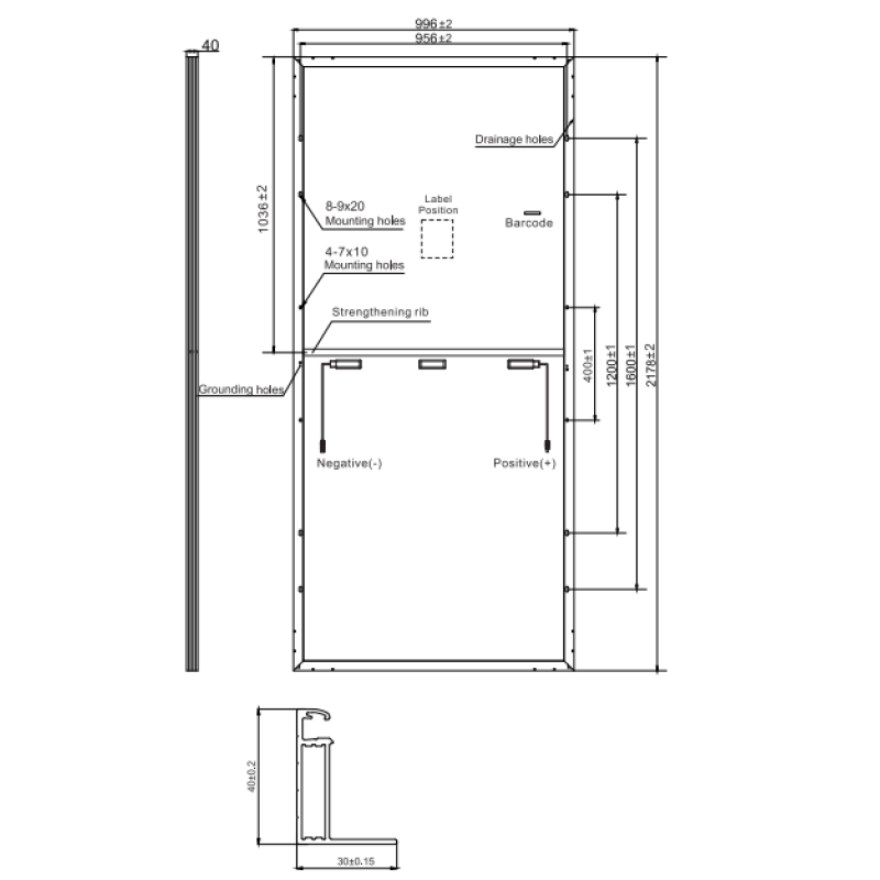 Характеристика | Класс А, Отклонение от заявленной мощности ±3% Вт, Номинальное напряжение 43,6 В, Номинальная сила тока 9,87 А, КПД 19,6% , Габариты: 2178х996х40, Вес 25,5 кг |