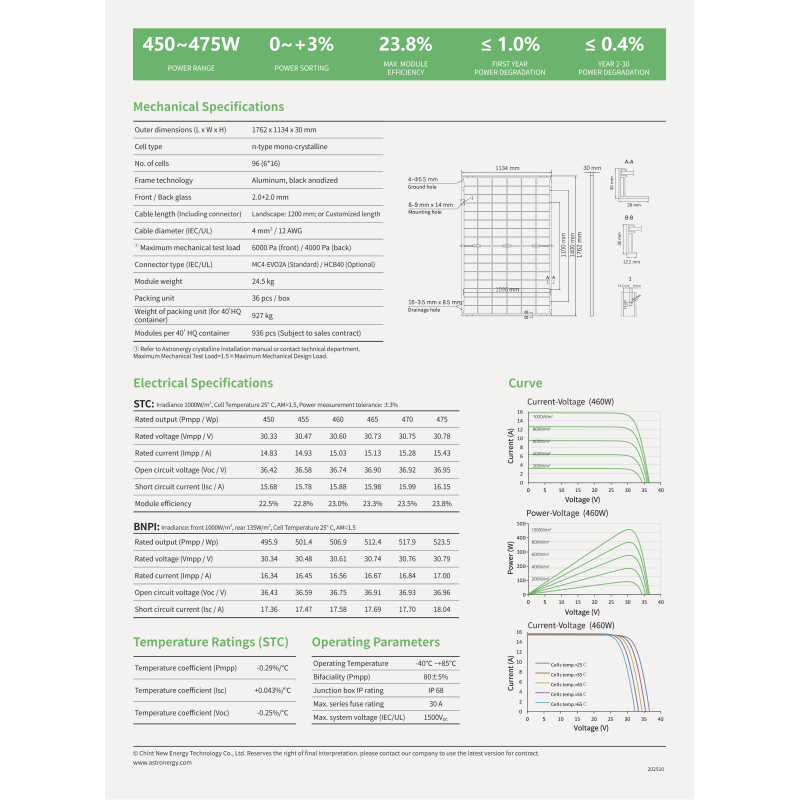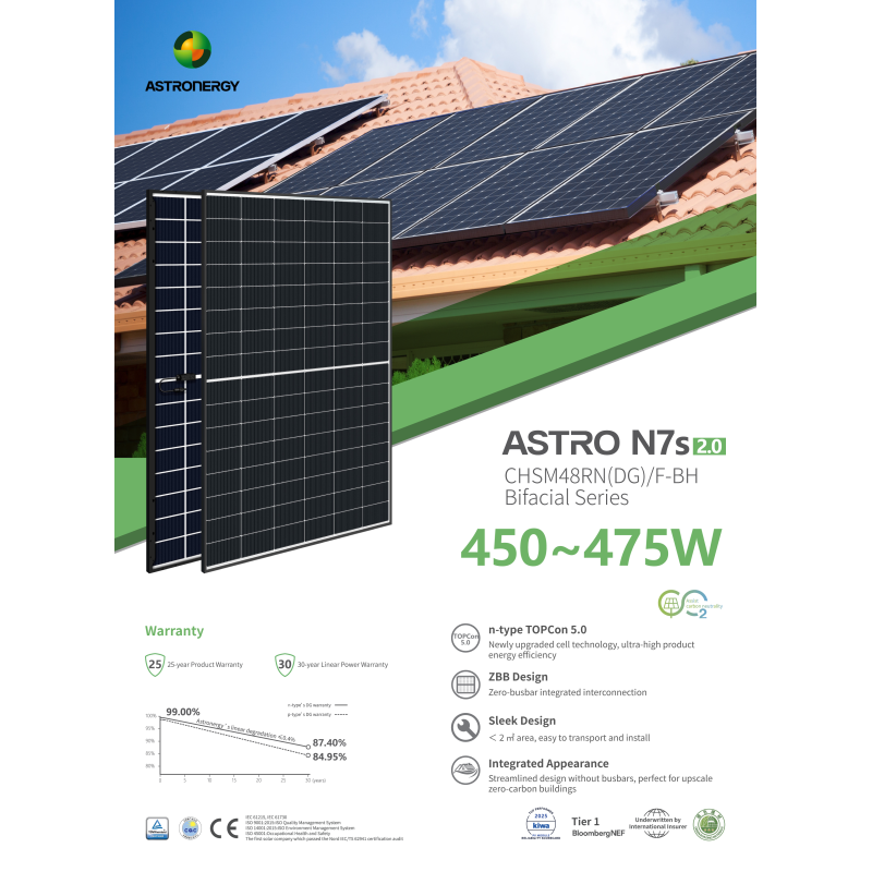 Солнечная панель Astronergy CHSM48RN(DG)/F-BH-460 Black Frame, 460Wp, Mono - это высококачественная фотоэлектрическая панель от производителя списка Tier 1.