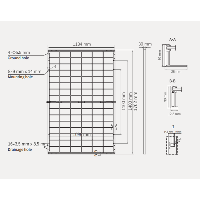 | Характеристика | Отклонение от заявленной мощности 3% ВтМаксимальное напряжение 30.6 ВНапряжение разомкнутой цепи (Voc) 36.58 В Максимальная сила тока 15.03 АТок короткого замыкания (Isc) 15.88А КПД 23 % Габариты: 1762 x 1134 x 30 ммВес 24,5 кг |