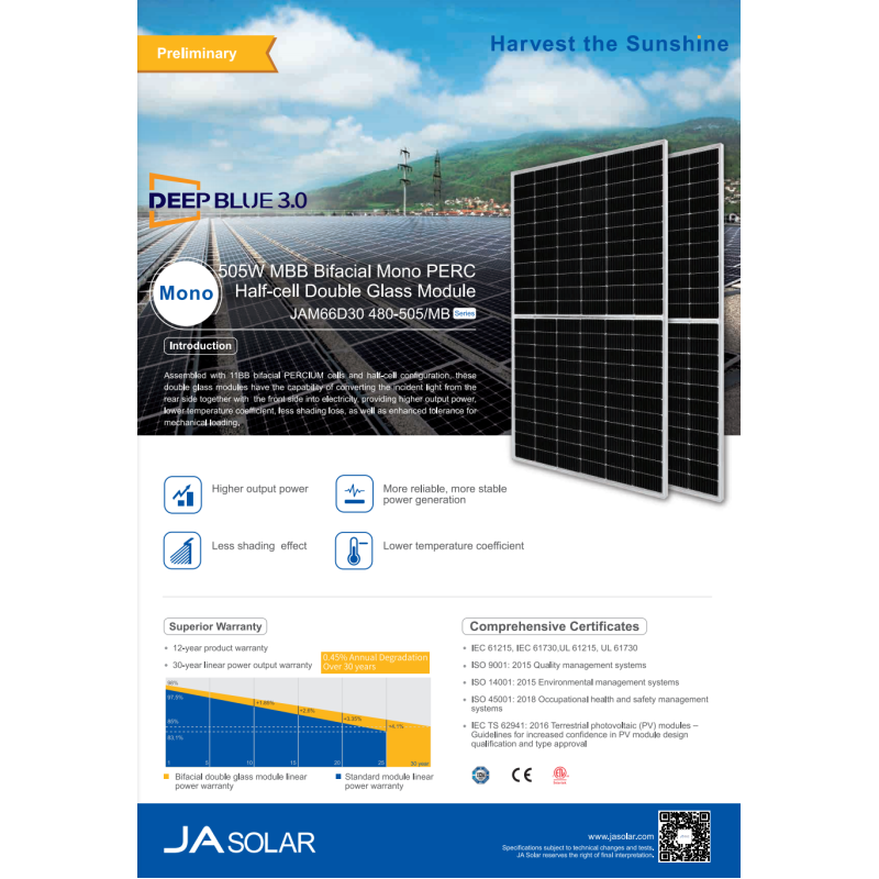 Солнечная панель JAM66D30-485/MB Mono Half-cell PERC Double Glass - это новая серия панелей JA Solar