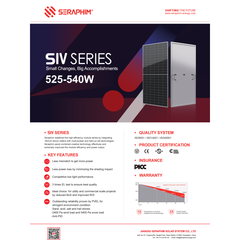 Как производитель солнечной продукции мирового класса, SERAPHIM специализируется на исследованиях, разработках, производстве и продаже солнечной фотоэлектрической продукции.