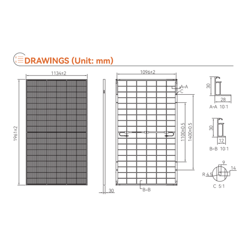 | Характеристика | Отклонение от заявленной мощности 0/+5 ВтНоминальное рабочее напряжение 33.94 ВНапряжение холостого хода 40.24 В Номинальный рабочий ток 14.88 АТок короткого замыкания 15.92 АКПД 22,7% Габариты: 1961x1134x30 мм Вес 27 кг |