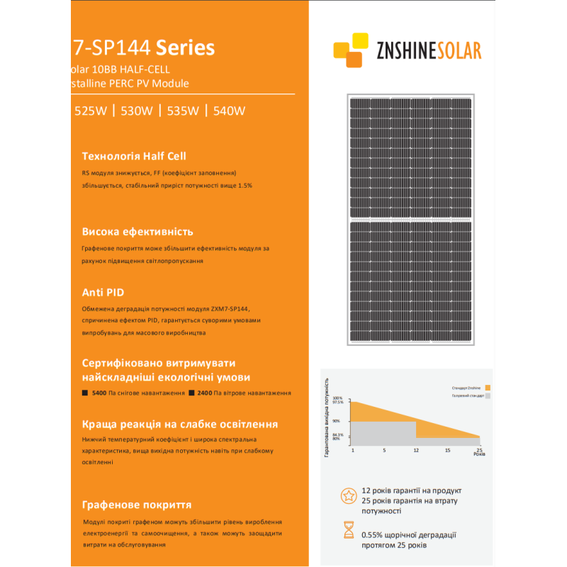 Солнечная панель ( батарея) ZXM7-SP144 530W Mono :
