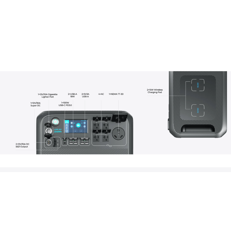 Завдяки двом портам розширення AC200MAX підтримує додатково до двох акумуляторних модулів B300 (3072 Вт * год, кожен купується окремо)