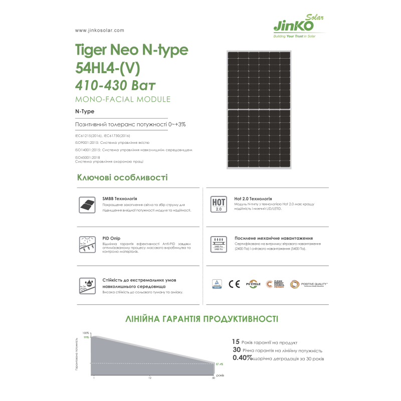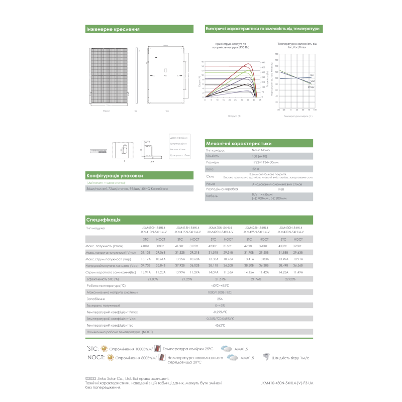 Характеристика | Відхилення від заявленої потужності 0~+3%Максимальна напруга 33.51 В Максимальна сила струму 13.33 А ККД 21.51 % Габарити: 1722×1134×30 мм Вес 22 кг |