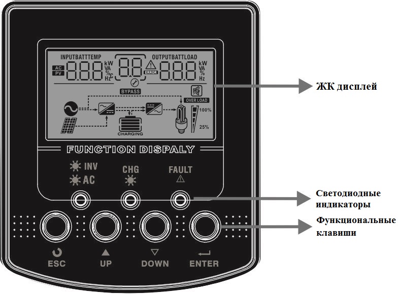 - встановлювати пріоритет заряду АКБ мережа або сонячні панелі